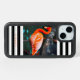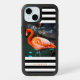 I love how flamingos stand out from all other birds. “Dare to be different” whenever you use this stylish, stunning, custom name photography Otterbox cell phone case of a bright orange pink flamingo sunning itself on a warm summer’s day, against a background of black and white stripes. Makes a great gift for someone special!