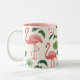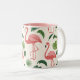 This mug features an artistic design combining elegant pink flamingos with refreshing green foliage, giving you a feeling of comfort and relaxation every time you use it.