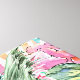 Watercolor illustration of beautiful pink flamingo surrounded by trropical plants and flowers.