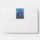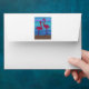 Envelope design that is looking forward to some flamingling. A happy couple of flamingos at dusk on the beach in a watercolor back flap. Stripes of blue, brown, and purple-pink on the inside of the envelope. Replace images when you personalize it. Matching products are available. Transfer this design to other items. Can be for a housewarming party or other occasions.