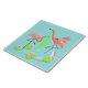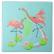 A bright, colourful mid-century inspired design with a retro touch: featuring pink flamingos "dancing" against a water lily covered turquoise background. A customizable design for you to personalise with your own text, images and ideas. An original digital art image created by Jess Perry at QuirkyChic Retro.