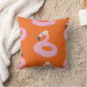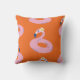 A playful design showcasing pink flamingo-shaped pool floats adorned with cheerful smiley flowers on a bright orange background. The whimsical and vibrant pattern adds a touch of tropical joy and summer vibes.