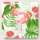 Watercolor pattern design with flamingo flowers and birds, monstera and palm leaves.