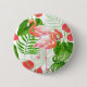 Watercolor pattern design with flamingo flowers and birds, monstera and palm leaves.
