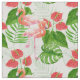 Watercolor pattern design with flamingo flowers and birds, monstera and palm leaves.