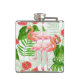 Watercolor pattern design with flamingo flowers and birds, monstera and palm leaves.