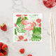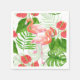 Watercolor pattern design with flamingo flowers and birds, monstera and palm leaves.