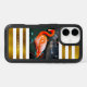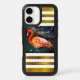 I love how flamingos stand out from all other birds. “Dare to be different” whenever you use this stylish, stunning photography cell phone case of a bright orange pink flamingo sunning itself on a warm summer’s day, against a background of simulated gold foil and white stripes. Makes a great gift for someone special!