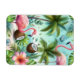 A vibrant and playful tropical design that transports you to a serene paradise. With its lively flamingos gracefully perched amidst lush palm trees, this artwork bursts with colorful blooms, fresh coconuts, and exotic greenery. The calming turquoise backdrop adds to the idyllic atmosphere, creating a refreshing and joyful vibe that's perfect for anyone who loves the tropical lifestyle.