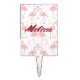 Decorate your cake with this flamingo hearts cake topper. Featuring pink flamingos on a white background, your name can be written in pink. Purchase yours today!