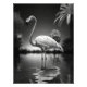 Majestic flamingo standing tall in a pool with a tropical and summery background. The playful composition create a sense of joy and relaxation, evoking memories of warm summer days. The beautiful and delicate flamingo adds a touch of elegance and grace to the piece.
