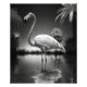 Majestic flamingo standing tall in a pool with a tropical and summery background. The playful composition create a sense of joy and relaxation, evoking memories of warm summer days. The beautiful and delicate flamingo adds a touch of elegance and grace to the piece.