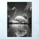 Majestic flamingo standing tall in a pool with a tropical and summery background. The playful composition create a sense of joy and relaxation, evoking memories of warm summer days. The beautiful and delicate flamingo adds a touch of elegance and grace to the piece.