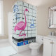 This fun shower curtain features a pink flamingo enjoying some shower time! This was created from the artist's original painting; brush strokes will be visible and are part of the design.