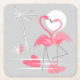 A pair of pink flamingos with necks curved to form a heart shape stand in the sea on a moonlit beach. A stylish, romantic design with a retro touch created in a pink, grey and white colour scheme with a colour-change background. A customizable design for you to personalise with your own text, images and ideas. An original digital art image.