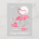 A pair of pink flamingos with necks curved to form a heart shape stand in the sea on a moonlit beach. A stylish, romantic design with a retro touch created in a pink, grey and white colour scheme with a colour-change background. A customizable design for you to personalise with your own text, images and ideas. An original digital art image.