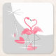 A pair of pink flamingos with necks curved to form a heart shape stand in the sea on a moonlit beach. A stylish, romantic design with a retro touch created in a pink, grey and white colour scheme with a colour-change background. A customizable design for you to personalise with your own text, images and ideas. An original digital art image.