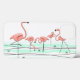 Mid-century inspired design with a retro touch featuring a group of pink flamingos standing in aqua water against a white background. A customizable design for you to personalise with your own text, images and ideas. An original digital art image created by Jess Perry at QuirkyChic Retro.