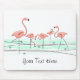 Mid-century inspired design with a retro touch featuring a group of pink flamingos standing in aqua water against a white background. A customizable design for you to personalise with your own text, images and ideas. An original digital art image created by Jess Perry at QuirkyChic Retro.