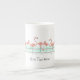 Mid-century inspired design with a retro touch featuring a group of pink flamingos standing in aqua water against a white background. A customizable design for you to personalise with your own text, images and ideas. An original digital art image created by Jess Perry at QuirkyChic Retro.