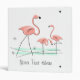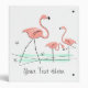Mid-century inspired design with a retro touch featuring groups of pink flamingos standing in aqua water against a white background. A customizable design for you to personalise with your own text, images and ideas. An original digital art image created by Jess Perry at QuirkyChic Retro.