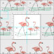 Mid-century inspired design with a retro touch featuring a group of pink flamingos standing in aqua water against a white background. A customizable design for you to personalise with your own text, images and ideas. An original digital art image created by Jess Perry at QuirkyChic Retro.