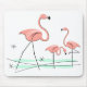 Mid-century inspired design with a retro touch featuring a group of pink flamingos standing in aqua water against a white background. A customizable design for you to personalize with your own text, images and ideas. An original digital art image created by Jess Perry at QuirkyChic Retro.