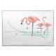 Mid-century inspired design with a retro touch featuring a group of pink flamingos standing in aqua water against a white background. A customizable design for you to personalise with your own text, images and ideas. An original digital art image created by Jess Perry at QuirkyChic Retro.