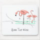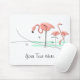 Mid-century inspired design with a retro touch featuring a group of pink flamingos standing in aqua water against a white background. A customizable design for you to personalise with your own text, images and ideas. An original digital art image created by Jess Perry at QuirkyChic Retro.
