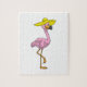 Flamingo on Beach with Hat Jigsaw Puzzle