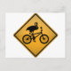 Warning sign showing silhouette of a flamingo riding a bicycle