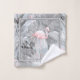 This towel set features a gorgeous pattern of flamingos surrounded by abundant tropical foliage and orchids in warm gray and blush pink. Striped borders are optional and can be moved or deleted if preferred. Search ID868 to see other products with this tropical pattern.