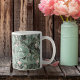 This coffee mug features a gorgeous pattern of flamingos surrounded by abundant tropical foliage and orchids in sage green and blush pink. A label has been provided to hold your name and monogram or other text. Search ID868 to see other products with this cool, tropical pattern.