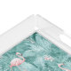 This acrylic tray features a gorgeous pattern of flamingos surrounded by abundant tropical foliage and orchids in soft blush pink and teal. A label has been provided to hold your name and monogram or other text. Search ID868 to see other products with this cheerful, summery pattern.