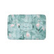 This bath mat features a gorgeous pattern of flamingos surrounded by abundant tropical foliage and orchids in soft blush pink and teal. An optional label has been provided to hold your name and monogram or other text. The size of this seamless pattern can be reduced to add more flamingos or enlarged and moved to include only your favorites from six different poses. Search ID868 to see other products with this cheerful, summery pattern.