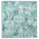 This cloth napkin features a gorgeous pattern of flamingos surrounded by abundant tropical foliage and orchids in soft blush pink and teal. A label has been provided to hold your name and monogram or other text. Search ID868 to see other products with this cheerful, summery pattern.