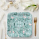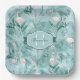 This paper plate features a gorgeous pattern of flamingos surrounded by abundant tropical foliage and orchids in soft blush pink and teal. A label has been provided to hold your name and monogram or other text. Search ID868 to see other products with this cheerful, summery pattern.