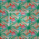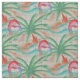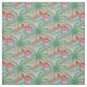 Aqua blue waves of the ocean surround the Pink Flamingo under the green Palm Trees on the sandy beach in this durable Burlap natural cloth fabric image. This tropical Palm Tree pattern is a very colorful summer print and has a chunky faux texture.