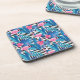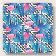 Flamingo & Palms on Geometric Pattern Beverage Coaster