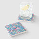 Flamingo & Palms on Geometric Pattern Stone Coaster