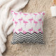 Flamingo Pattern with Chevron Stripes Throw Pillow