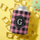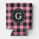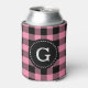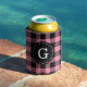 Flamingo Pink Buffalo Check Plaid 1I Monogram Can Cooler