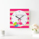 Flamingo Pink Stripe Personalized Wall Clock