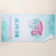 Tropical beach towel with a pink flamingo.