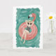 This watercolor style greeting card features a portrait of a woman laying on a pink flamingo pool floatie.
