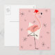 Flamingo Santa Pink portrait Holiday Postcard