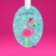 Flamingo Santa Turquoise Tropical Christmas Ornament