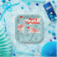 Flamingo Santas Blue Merry Christmas square Paper Plates