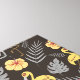 Do you love flamingo birds? Do you enjoy wildlife in rainforests? This tropical flamingo seamless pattern will add some fun to your summer holidays. It fits you when sitting on the beach. Floral patterns always give the impression of joy and happiness. You can present it as a gift to your friends who love flamingo birds. Flamingo surface pattern with flowers and leaves in yellow color and dark background