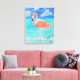 Printed reproduction of a flamingo at the beach is a reproduction of an original acrylic painting by medium and spirit artist Gigi T. Sunshine. Stretched canvas, 16"x20" suitable for hanging without frame
